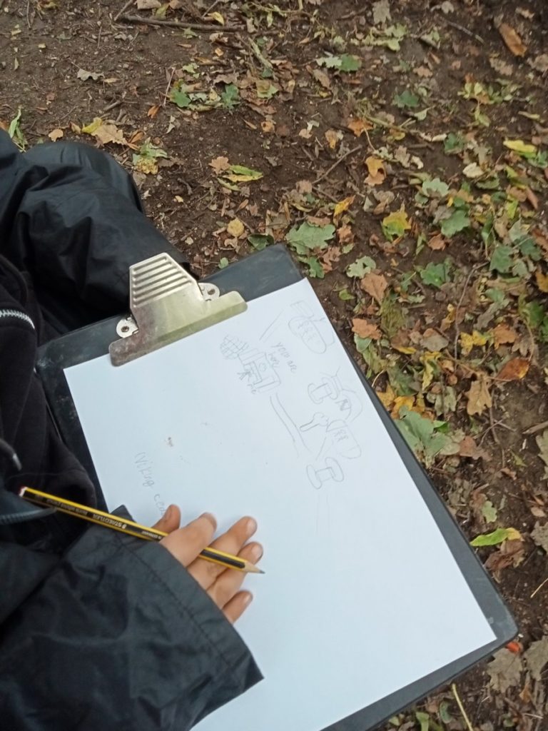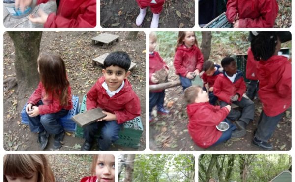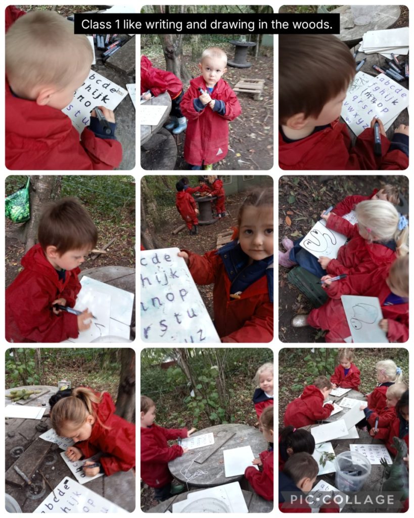 Class 1 get ready for the woods very quickly. That gives us lots more time to play. The children made lots of pretend campfires and dens. They also did lots of drawing and writing.