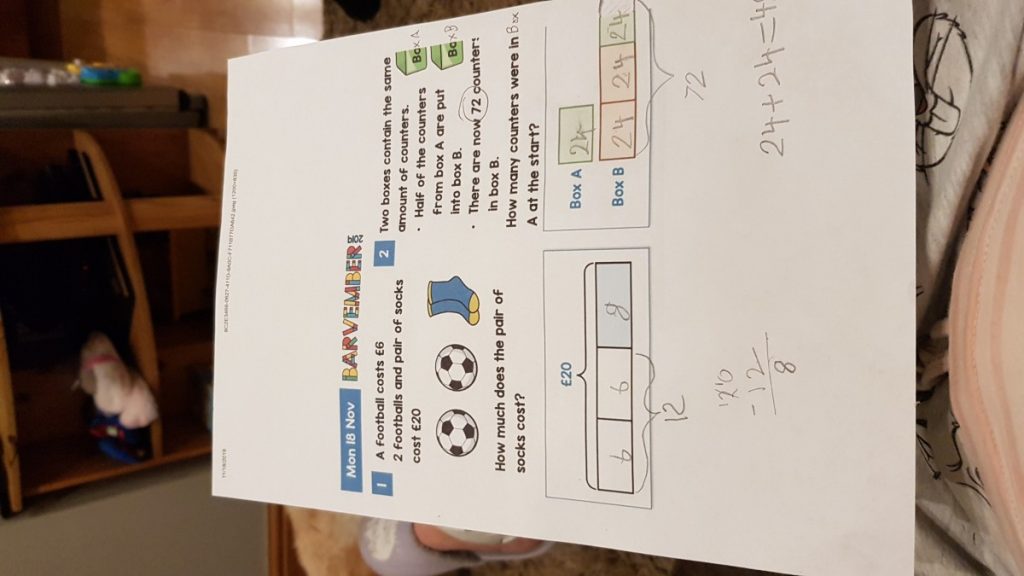 To find the counters in box A, we need to take away 24 counters from 72.