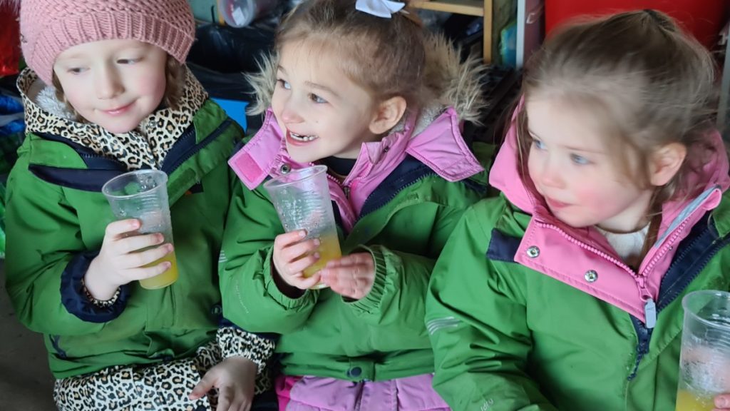 It was a windy afternoon today! When it got too windy we went to the cabin for snack.