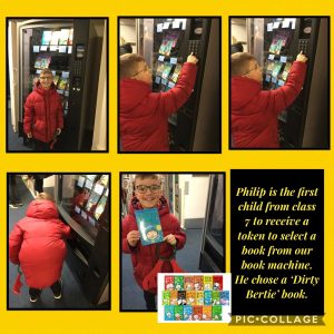 Exciting moment as Philip was presented with a token to choose a book from our vending machine.