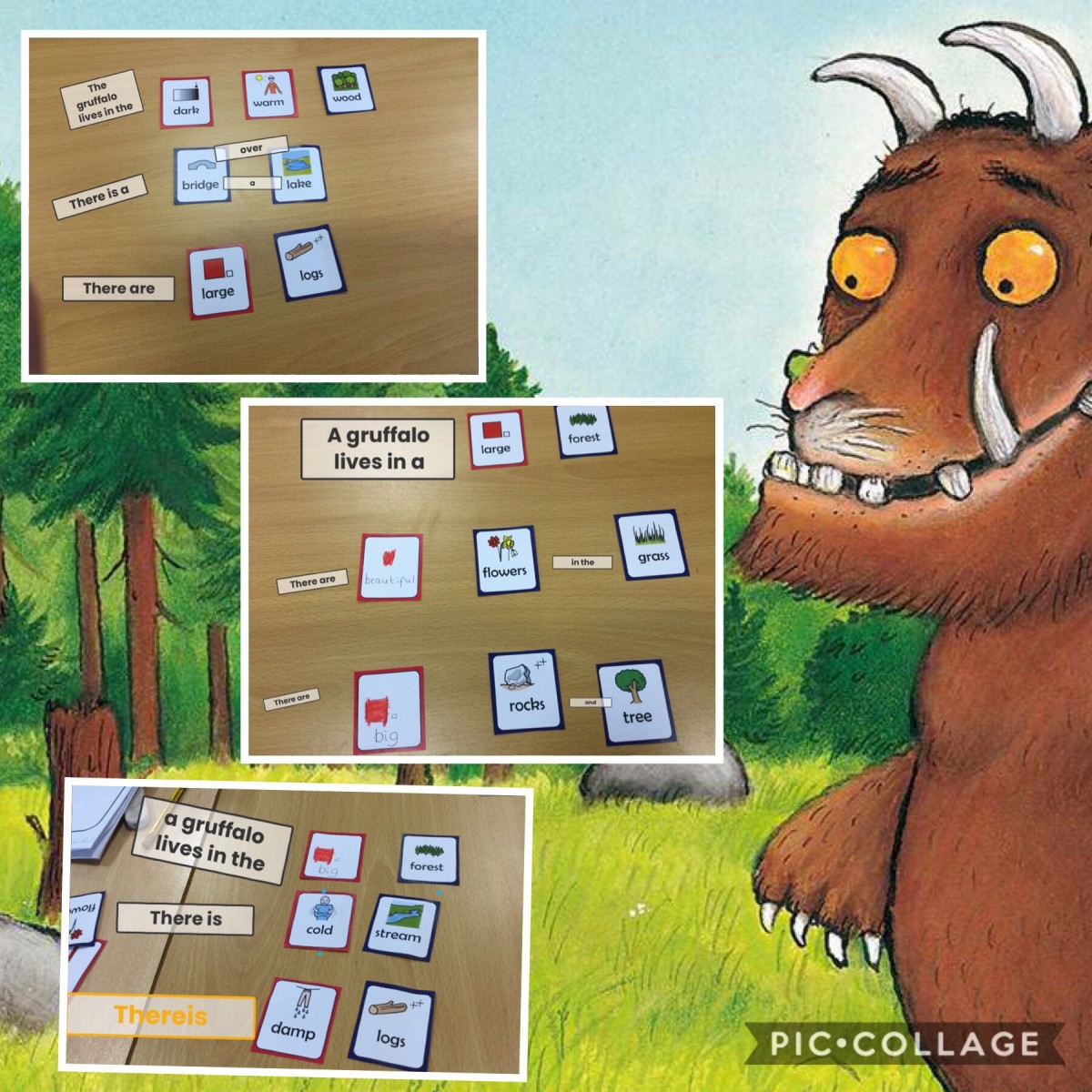 We have been describing the gruffalo’s habitat today. We have added little words, capital letters and full stops to create sentences.