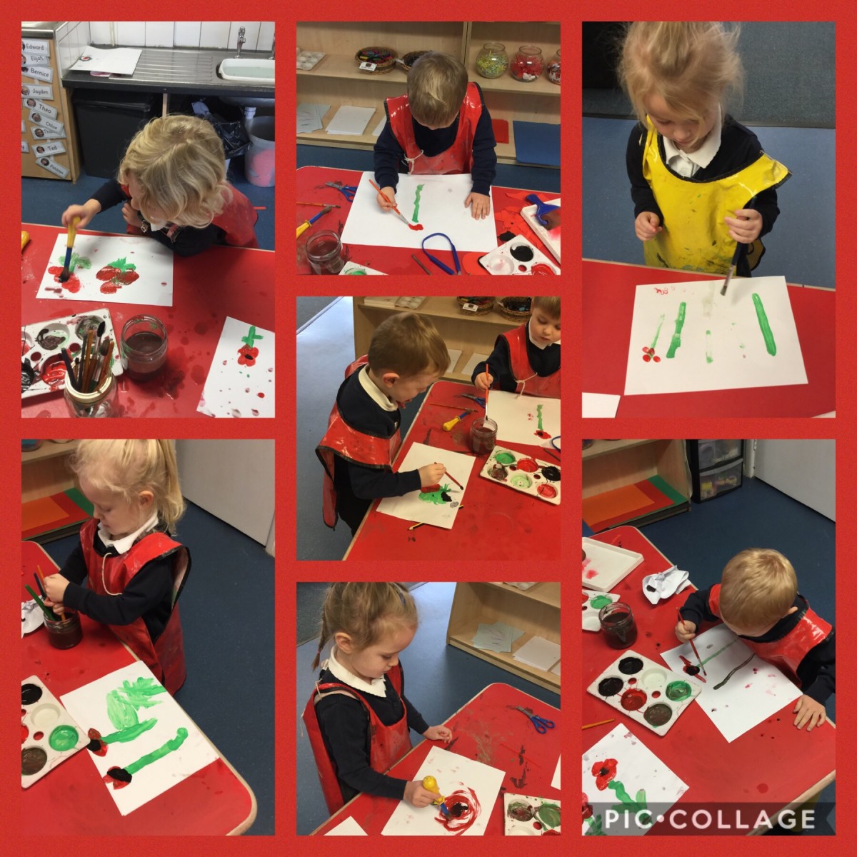 Today we learnt about why we wear Poppys and took part in 2 minutes silence. We painted poppy pictures in free flow. Look at our lovely art work