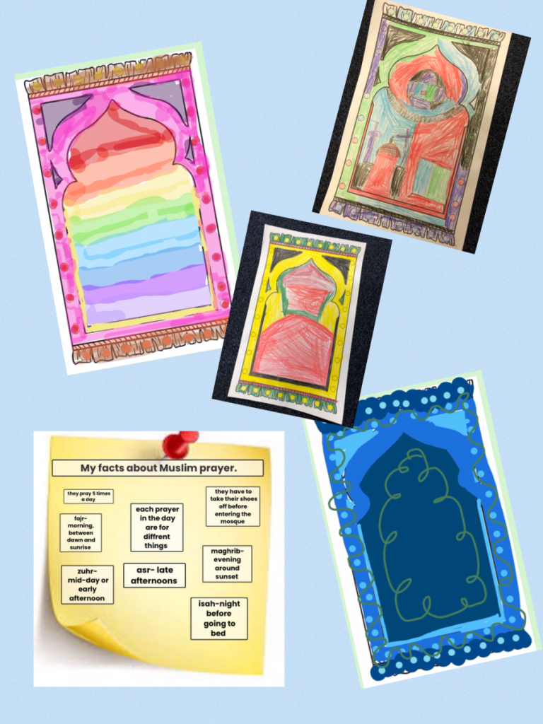 Year 2 have explored Muslim prayer and how they prepare by washing. We designed our own mats.