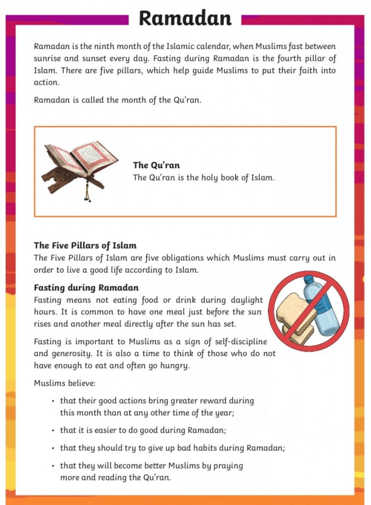 5. Fasting is where you don’t eat when it is light outside and it goes on for a hole month