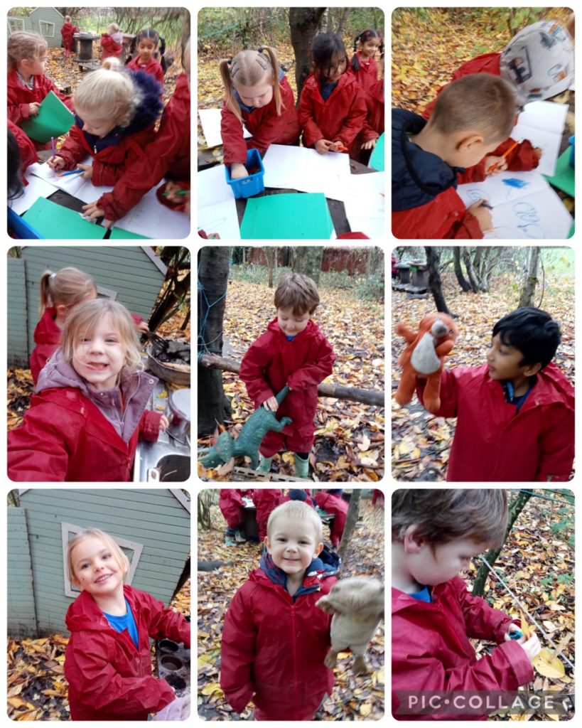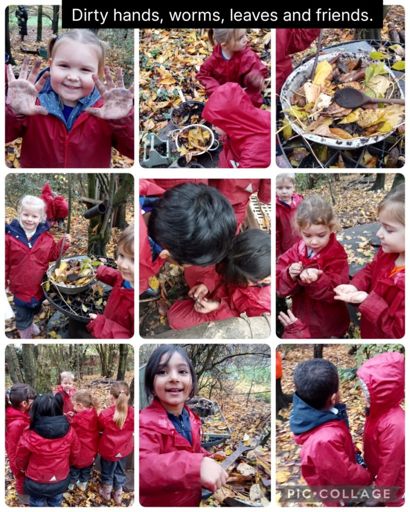We got ready for the rain this morning but it didn’t come. We had lots of fun with friends. We looked at leaves and worms and got dirty!
