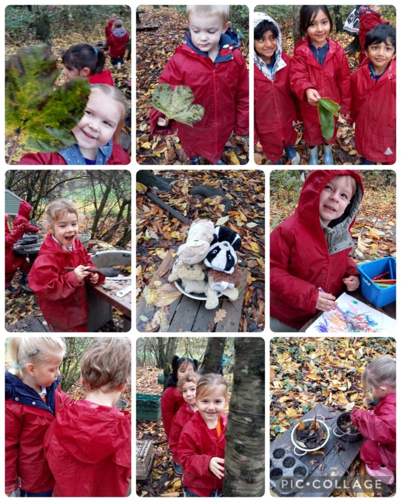 We got ready for the rain this morning but it didn’t come. We had lots of fun with friends. We looked at leaves and worms and got dirty!