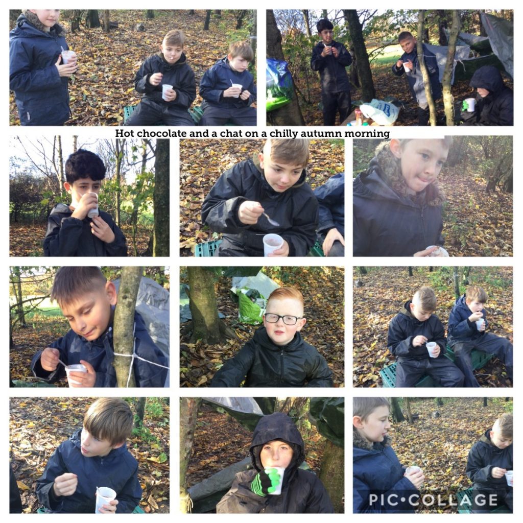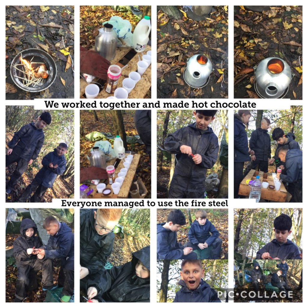 Hot chocolate and biscuits! The children who had used the fire steel before showed the others how to do it. They were really good mentors!
