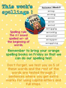 Spellings Autumn 1 Week 8