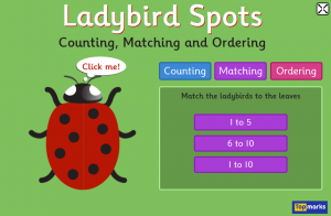 Play the ladybird maths game below matching the spots on the ladybirds to the numbers.